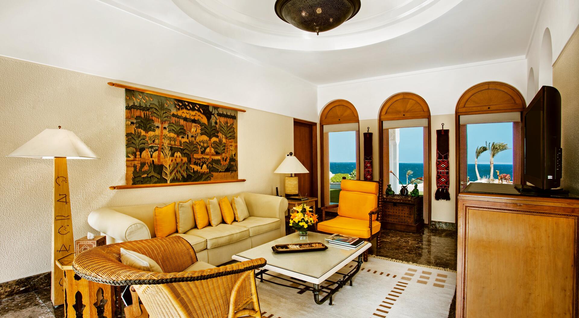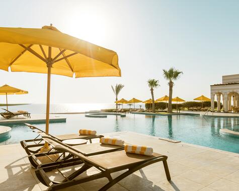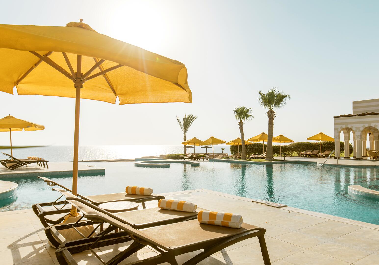 Das Oberoi Beach Resort, Sahl Hasheesh bietet Luxus am Roten Meer mit eleganten Suiten, privatem Strand, Spa und Gourmet-Restaurants.