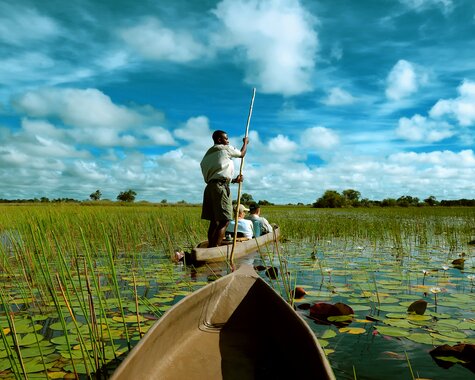 Wenn in der Umgebung Trockenzeit ist, dann ist der Wasserstand im Okavango-Delta am höchsten und die Tiere bevölkern das Ufer und die kleinen Inseln im Delta. Mit den erfahrenen Führern des Little Vumbura Camps erleben Sie bei Pirschfahrten im offenen Fahrzeug so gut wie alle "Schwergewichte" unter den Säugetieren aus nächster Nähe: Elefanten, Büffel, Löwen, Leoparden und Geparden sind häufig anzutreffen. Zudem sind im Okavango-Delta Flusspferde und Nilkrokodile heimisch. Es geht aber auch graziler - wenn Antilopen und viele Vögel über den "Laufsteg Savanne" flanieren. Je nach Jahreszeit und Wasserstand bewegt man sich auch mit Mokoros - gestakten Langbooten aus Holz - geräuschlos auf den Wasserwegen des Deltas. (F/M/A)