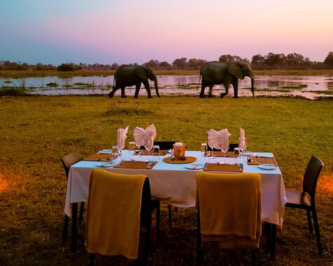 Die Linyanti-Region ist ebenso wie der benachbarte Chobe Nationalpark für ihre Elefanten berühmt – vor allem während der Wintermonate (unserem Sommer) ziehen sie in großen Herden an den Fluss zum Trinken, Baden und Spielen. Die gesamte afrikanische Tierwelt gibt sich ein Stelldichein: Auch Büffel, Zebras, Giraffen, Vögel, Affen sowie Flusspferde und viele Antilopenarten leben hier. Die Stars der Savanne sind Raubtiere wie Löwen, Leoparden, Geparden, Wildhunde und Hyänen. Den Tag lassen Sie am Lagerfeuer auf dem Aussichtsdeck Ihrer Lodge ausklingen – ein Gin Tonic und das Konzert der Tierstimmen begleitet Sie in die Nacht unterm Sternenhimmel. (F/M/A)
