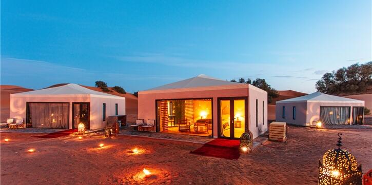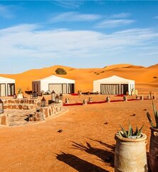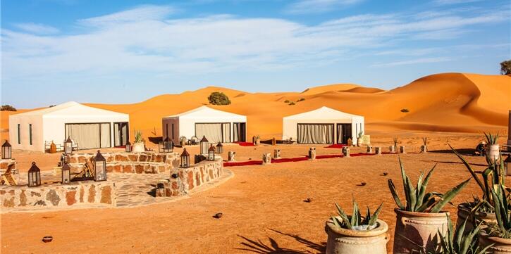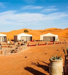 Durch die Ausläufer des Mittleren und Hohen Atlas, vorbei an den Zedernwäldern, über Pässe und durch faszinierende Hochebenen geht die Fahrt und folgt dann dem Ziz-Fluss bis zur Stadt Merzouga weit im Süden. Inmitten der spektakulären Dünenlandschaft von Erg Chebbi beziehen Sie Ihr stilvolles Wüstencamp – ein komfortables Refugium unter dem Sternenhimmel. Genießen Sie den Zauber der Wüste bei einem traditionellen Abendessen am Lagerfeuer, fernab vom Trubel der Welt. (F/M/A)