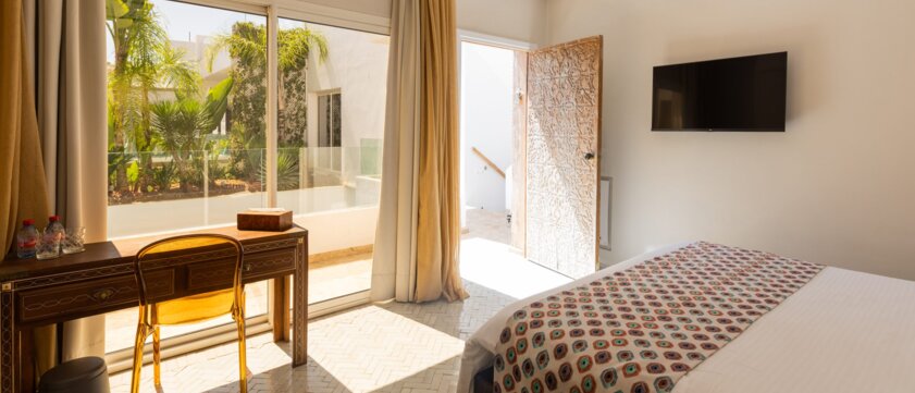 Riads & Ksars sind alte und traditionelle Herrenhäuser & Paläste mit einem Innenhof oder Garten. Die Zimmer in diesen Häusern sind zumeist unterschiedlich in ihrer Größe, Ausstattung und Lage. Die Häuser sind oft sehr klein und verfügen nur über wenige Zimmer. Wir bitten um Ihr Verständnis, dass die Erfahrung und das Ambiente hier im Vordergrund stehen.