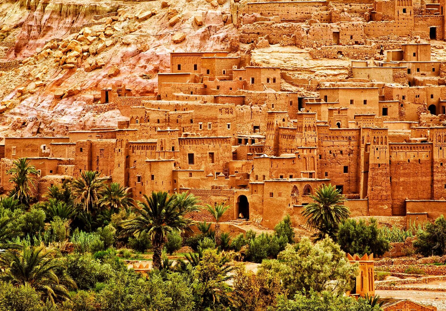 Die Fahrt führt zum Ecomuseum Khettaras, wo Ihnen Oasenbewohner die traditionellen Bewässerungsanlagen zeigen. Als nächstes Ziel lockt die atemberaubende Todra-Schlucht. Die hohen Felswände nähern sich hier bis auf wenige Meter. Viele marokkanische Familien verbringen an diesem Ort den Nachmittag am Wasser bei einem gemütlichen Picknick. Nach dem Mittagessen geht es auf der berühmten Straße der 1.000 Kasbahs und vorbei an El Kelaa Mgouna, dem Zentrum des Rosentales (Blütezeit April - Mai) weiter, wo die jahrhundertealten Lehmburgen, das Grün der Oasen und die braunen Berge zu einem einzigartigen Gesamtkunstwerk verschmelzen. (F/M/A)