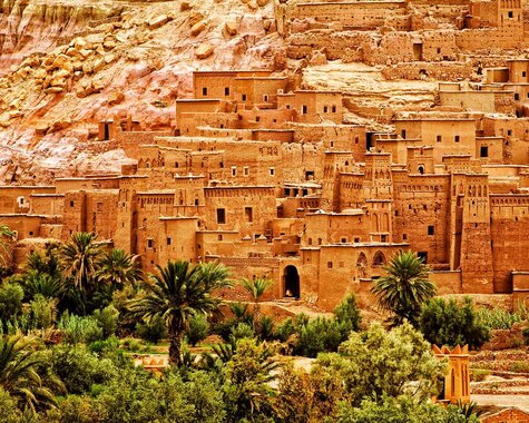 Am frühen Morgen - noch vor dem Besucherandrang - besuchen Sie das UNESCO-Weltkulturerbe Aït-Ben-Haddou. In der befestigten Berber-Siedlung ist die Lehmarchitektur sehr gut erhalten, was auch die Filmindustrie immer wieder für Dreharbeiten nutzt. Über den 2.260 m hohen Gebirgspass Tizi-n-Tichka, durch atemberaubende Täler und Schluchten erreichen Sie Marrakesch. Unvergleichlich ist die abendliche Atmosphäre auf dem Platz Djemaa el Fna: Marrakeschs unvergleichliche Bühne für Schlangenbeschwörer, Märchenerzähler, Gaukler und Musikanten wurde von der UNESCO 2008 zum immateriellen Kulturerbe der Menschheit erklärt. Neben Henna-Künstlerinnen und Orangensaftverkäufern, dampfen lokale Gerichte in den offenen Garküchen. Am besten beobachtet man das Treiben von einer Dachterrasse eines der umliegenden Cafés. (F/M)
