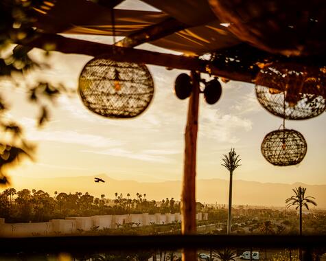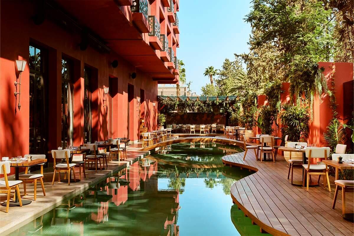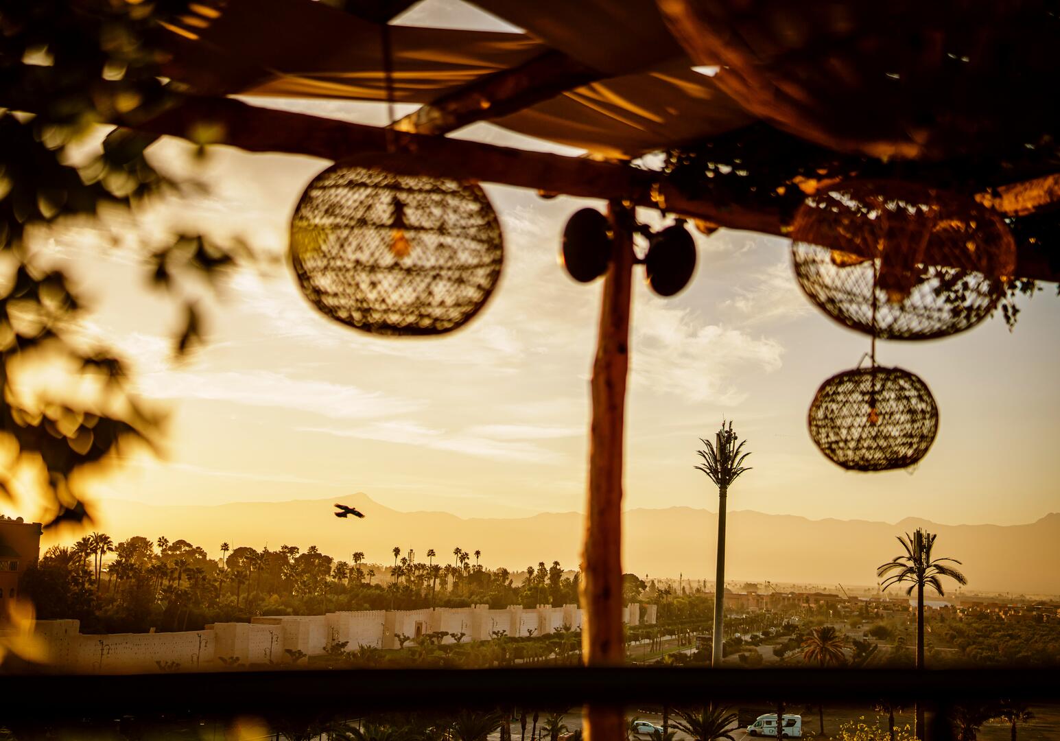 Ein Highlight über der Stadt ist der Rooftop Garden – ein erfrischender Platz mit Rundum-Blick auf Medina, Atlasberge und Dächer, umgeben von einem runden Pool und stillen Cabanas