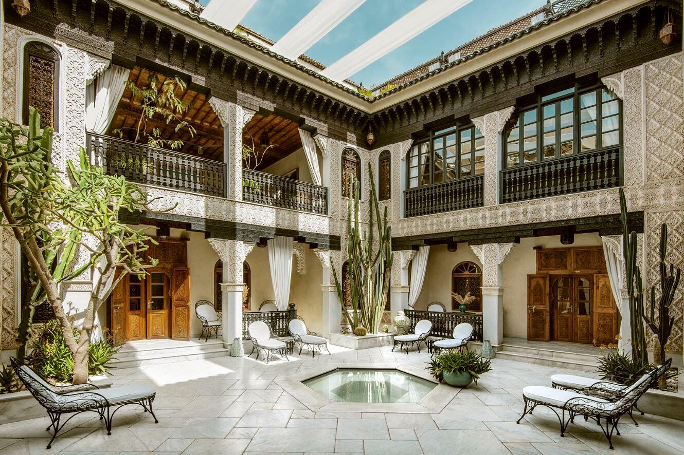 Design: Traditionell‑marokkanisch mit kunstvollen Zellij‑Fliesen, handgeschnitztem Holz und opulenter Dekoration