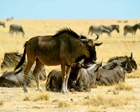 Sie haben zwei Tage Zeit, um die Tiere im berühmtesten Nationalpark Namibias zu beobachten. Rings um die namensgebende Salzpfanne bevölkert eine vielfältige Tierwelt von Elefanten, Löwen, Leoparden, Giraffen, Zebra- und Gnuherden sowie Antilopen das Areal, auch eine reiche Vogelwelt hat hier ihre Heimat. Während der Fahrt im eigenen Fahrzeug bestimmen Sie selbst den Rhythmus – wie lange wollen Sie die Elefanten beim Baden beobachten, wie geduldig einer Löwenfährte folgen und wieviel Zeit der Vogelbestimmung einräumen. Es ist immer wieder faszinierend, wie viele Tiere in dem eher trocken erscheinenden Gelände Nahrung und Wasser finden. Gegen Aufpreis können Sie auch eine geführte Pirschfahrt unternehmen – Sie werden überrascht sein, wie viele kleine Tiere die erfahrenen Guides aufspüren. (F/M/A)