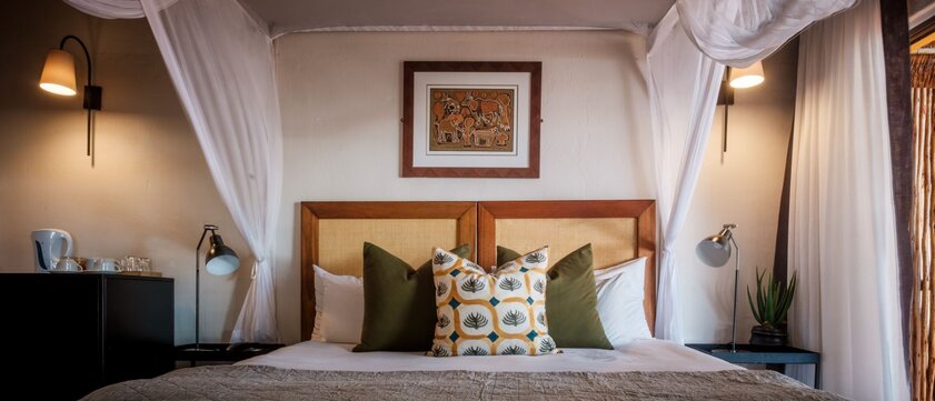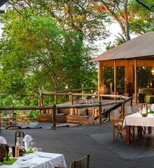 Durch den schmalen Caprivi Streifen, noch immer namibisches Staatsgebiet, fahren Sie zur Nambwa Tented Lodge. Die exklusiven Zeltsuiten wurden auf Plattformen in die Kronen weit auslandender Bäume gebaut. Befestigte Holzstege verbinden die Suiten mit dem riesigen Hauptgebäude, das ebenfalls auf einer überdimensionalen Plattform steht und einen traumhaften Blick auf das Schwemmland und das Wasserloch ermöglicht. Die Lodge bietet Pirschfahrten, Bootsfahrten auf dem Kwando und geführte Ranger-Wanderungen an. Ebenso können Sie bei einem Dorfbesuch mehr über die Einwohner dieser Region erfahren oder den Sonnenuntergang an der pittoresken "Horseshoe Lagune" genießen. (F/A)