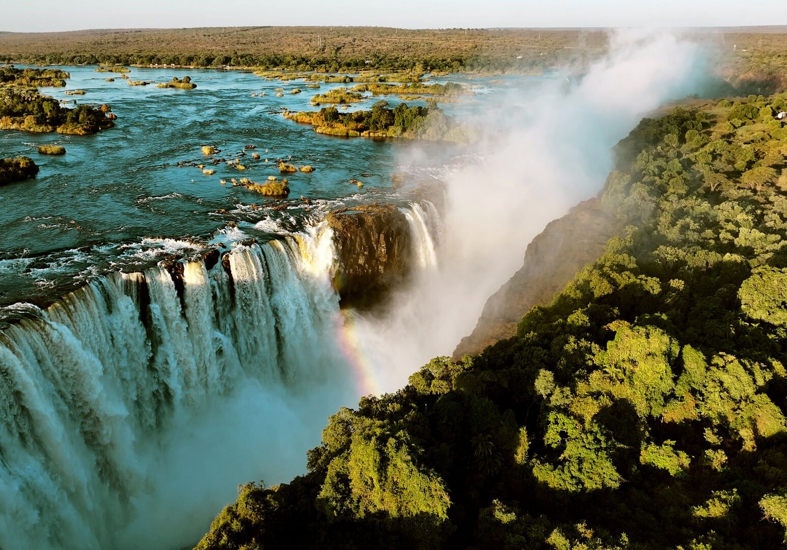 Freie Zeit zur Verfügung für Aktivitäten in Victoria Falls. Victoria Falls bietet zahlreiche Möglichkeiten für einen abwechslungsreichen Tag. Fliegen Sie z.B. mit dem Hubschrauber über die Fälle, so bekommen Sie einen guten Eindruck von der in den Himmel steigenden Gischt und sehen, wie breit der Sambesi an der Abbruchkante ist. Auf dem großen Handwerkermarkt können Sie nach letzten Souvenirs suchen. Am Nachmittag nehmen Sie das Boot, um den Sonnenuntergang auf dem Sambesi zu erleben – im Wasser schnauben die Flusspferde, das Ufer wird von Wasservögeln gesäumt und mitunter lassen sich auch noch einmal Elefanten blicken. Der ganze Zauber Afrikas offenbart sich Ihnen hier noch einmal im schönsten Licht des Abends. (F/A)