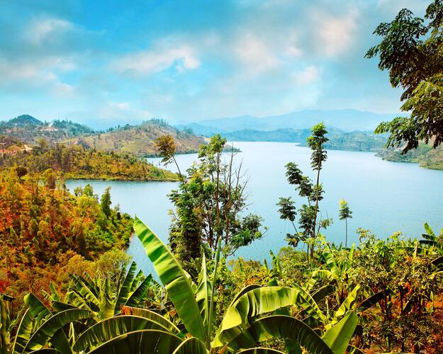 Die Reise kann um ein weiteres landschaftliches Erlebnis erweitert werden – ein Aufenthalt am Kivu-See. Er ist der größte unter zahlreichen Süßwassergewässern, die in den Tälern Ruandas schimmern. An seinem Ufer liegen einige bekannte Badeorte inmitten von steilen, grünen, terrassenförmigen Hügeln.