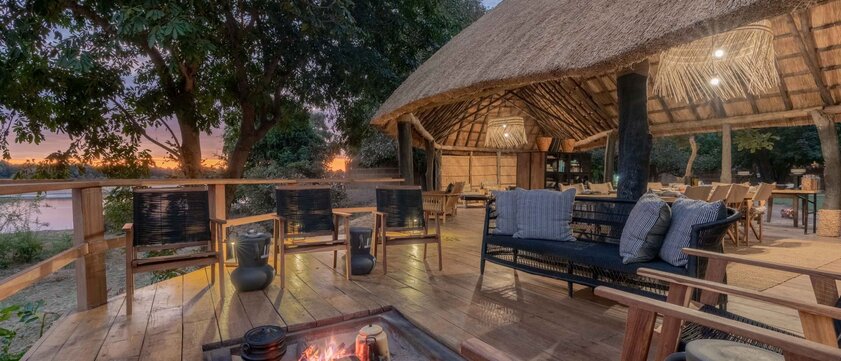 Hauptbereich mit Bar, Lounge, Essbereich und Lagerfeuerstelle