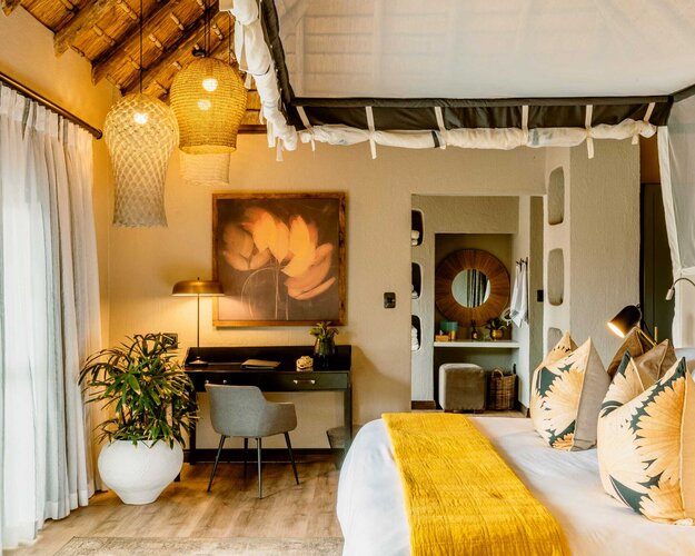 Wo sich die Big Five und zahlreiche Vogelarten ein Stelldichein geben, stehen magische Tierbegegnungen an der Tagesordnung. An solch einem zauberhaften Ort empfängt Sie die Simbambili Game Lodge, geschützt von uralten Bäumen am sanft dahinfließenden Manyeleti-Fluss. Im legendären Sabi Sand Game Reserve gelegen, eröffnen sich Ihnen bei von geschulten Rangern geführten Buschwanderungen, Pirschfahrten und vom Pool Ihrer Suite aus Ausblicke auf die Tierwelt Afrikas, die sich in dem Reservat und dem direkt angrenzenden Kruger Nationalpark in ihrem natürlichen Lebensraum zeigt. Authentisches À-la-carte Dining und Boma-Barbecues sowie die holistischen Wellnessbehandlungen mit afrikanischen Produkten sorgen für exklusive Momente des Loslassens inmitten der Wildnis.