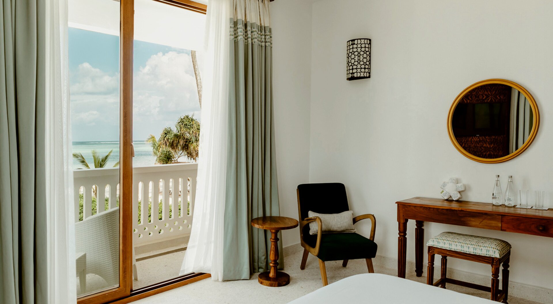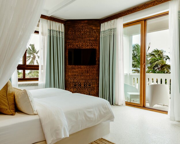Puderzuckerweißer Sand, sanft wiegende Kokospalmen und das türkisblau schimmernde Meer des Sansibar-Archipels bilden die Kulisse. Bei Ebbe erscheint eine Sandbank – der perfekte Ort für eine morgendliche Sun Salutation.
