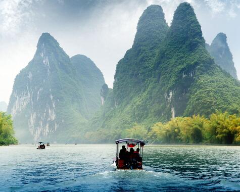 Der Li-Fluss windet sich durch Tausende bizarre Gipfel und nach jeder Biegung öffnen sich neue, märchenhafte Ausblicke. Nach einer Bootsfahrt entlang der eindrucksvollen Szenerie besuchen Sie ein kleines Dorf in der Umgebung und können hier über den Markt schlendern. Am restlichen Tag genießen Sie Ihr Hotel und die beschauliche Landschaft. (F)