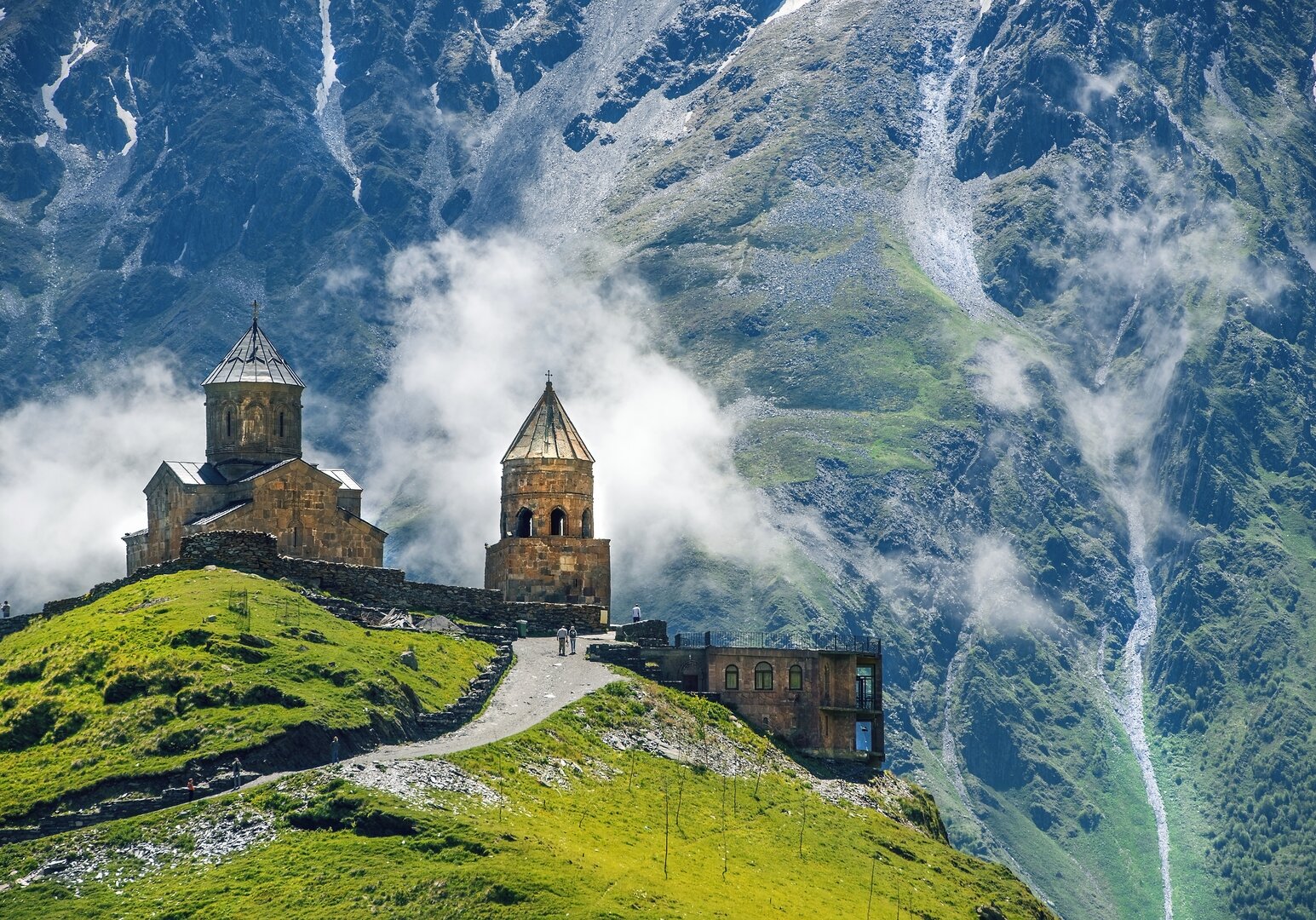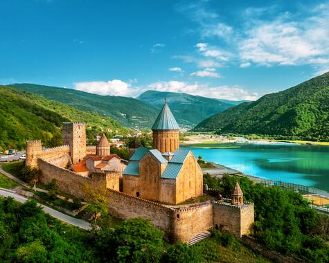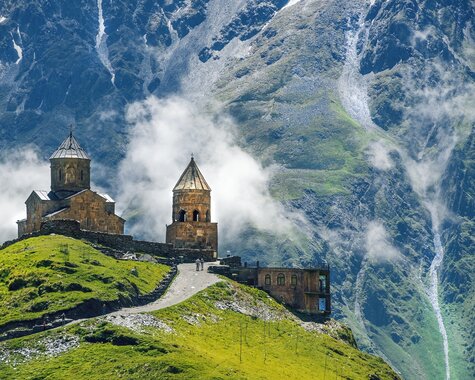 Nach dem Frühstück verlassen Sie Tiflis – Ziel ist Mzcheta, die alte Hauptstadt und zugleich religiöses Herz Georgiens. Inmitten malerischer Kulisse beeindrucken hier die Dschwari-Kirche auf einem Hügel und die monumentale Swetizchoweli-Kathedrale – beide UNESCO-Welterbe. Dann nimmt die Reise Fahrt auf: Entlang der Georgischen Heerstraße geht es über den Kreuzpass immer weiter hinauf in die eindrucksvolle Bergwelt des Großen Kaukasus. Es öffnet sich ein atemberaubendes Panorama auf die schroffen Gipfel und grünen Täler des Großen Kaukasus – wild, majestätisch und von ursprünglicher Schönheit. Am Nachmittag erreichen Sie Stepantsminda, am Fuße des sagenumwobenen Kasbeg. Mit Geländewagen geht es steil hinauf zur Gergeti-Dreifaltigkeitskirche, die inmitten der wilden Berglandschaft fast unwirklich erscheint. Und mit etwas Glück zeigt sich am Horizont der mächtige Gletscher des Kasbeg in voller Pracht. Abendessen und Übernachtung im Bergort. (F)