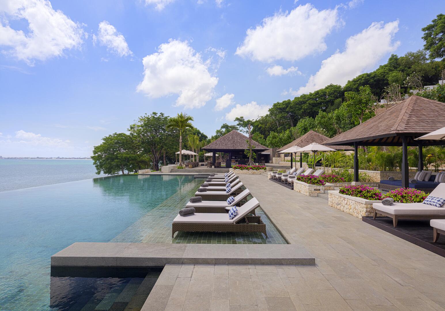 Team Hotels & HideawaysHier schwimmt jeder im eigenen Pool: Alle Villen des Raffles Bali verfügen über einen eigenen Pool mit Blick auf die Jimbaran Bucht – traumhafte Sonnenuntergänge gehören zum alltäglichen Unterhaltungsprogramm. Die Größe ist überschaubar: Die 32 Villen erstrecken sich über einen Hang, so ist für jede der Blick zum Meer unverstellt. In den Restaurants erwarten Sie authentische kulinarische Erlebnisse, in zwei Bars treffen Sie sich mit neuen Freunden. Wer sich fit halten möchte, nutzt das Fitnesscenter oder spielt eine Runde Tennis, für körperliche Entspannung wird im Raffles Spa und The Sanctuary auf höchstem Niveau gesorgt.