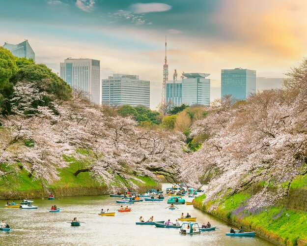 In Japan herrscht gemäßigtes Klima. Im Sommer warm und schwül, im Winter kühl und sonnig. Der Frühling von März bis Mai und der Herbst von September bis November sind die angenehmsten Reisemonate. Die Kirschblüte fällt meist in die ersten beiden Aprilwochen. Die Herbstlaubfärbung beginnt im Oktober.
