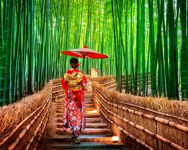 Erkunden Sie heute die Burg Nijo mit ihrem schönen Garten. Der Kinkaku-ji-Tempel ist ein weiterer Höhepunkt Kyotos mit einer perfekten Gartenanlage. Entdecken Sie die schönsten Tempel und Zen-Gärten, u. a. beim Besuch des Ryoan-ji-Tempels mit seinem berühmten meditativen Steingarten. Am Nachmittag geht es zum Tenryu-ji Tempel, der zum UNESCO-Weltkulturerbe ernannt wurde. Von hier aus gelangen Sie auch zu einem der schönsten Bambus-Wälder Japans. Anschließend finden Sie im Herzen Kyotos auf dem Nishiki Markt neben Gewürzen und frischem Fisch auch kleine Souvenir-Shops. (F/M)