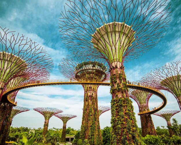 In Chinatown, Little India und Kampong Glam bekommen Sie einen Eindruck von den vielen Kulturen, die in Singapur friedlich zusammenleben. Ihr Mittagessen nehmen Sie im Restaurant Open Farm Community, das in einem kleinen städtischen Garten liegt und eine spannende Kombination aus urbanem Bauernhof und Restaurant darstellt. Am Nachmittag erleben Sie einen gleichermaßen botanischen wie architektonischen Höhepunkt: die Gardens by the Bay. Mehr als eine Million Pflanzen wurden auf dem Gelände gepflanzt, überwältigend sind die Supertrees, die bis zu 50 m in den Himmel ragen und mit Stegen verbunden sind. (F/M)