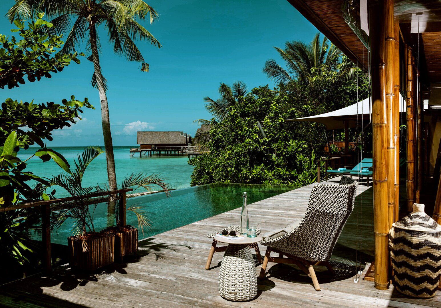 Design: Luxuriöses, offenes Design mit nachhaltigen Naturmaterialien & direktem Zugang zur Lagune