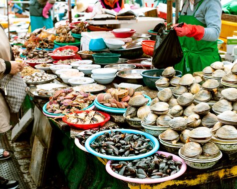 Heute Vormittag erleben Sie ein unterhaltsames Kochevent. Zunächst besuchen Sie einen lokalen Markt, wo Sie gemeinsam mit Ihrem englischsprachigen Guide die frischen Zutaten und die lebendige Marktstimmung entdecken. Anschließend nehmen Sie an einem Kochkurs teil, der Ihnen die authentischen Spezialitäten und traditionellen Techniken der koreanischen Küche näherbringt. Während des Kurses werden die einzelnen Schritte auf Englisch erklärt, und Sie haben die Gelegenheit, die Zubereitung lokaler Gerichte aktiv zu erleben. Zusätzlich können Sie den Geschmack des regionalen Reisweins probieren. Am Nachmittag steht ein kultureller Programmpunkt auf dem Plan: Sie besuchen das Busan Museum of Contemporary Art und das nahegelegene F1963, ein ehemaliges Industrieareal, das heute als kreative Plattform für Kunst, Design und Kultur dient. (F/M)