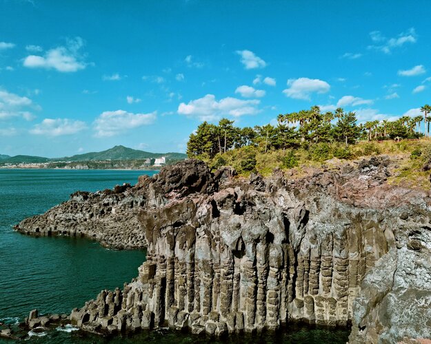 Am Vormittag besuchen Sie die Jusangjeollidae Seaside Cliffs, eine beeindruckende Küstenformation aus hohen, säulenartigen Basaltsteinen. Die mächtigen Säulen wirken, als hätten sie kunstvolle Handwerker geschaffen, entstanden jedoch natürlich, als die Lava des Hallasan-Vulkans ins Meer von Jungmun floss. Die Jusangjeollidae Klippen sind ein ausgewiesenes Kulturdenkmal von Jeju und bieten atemberaubende Fotomotive entlang der Küste. Weiter geht es zu den Jeongbang Wasserfällen, einem der wenigen Wasserfälle Asiens, der direkt ins Meer mündet. Bewundern Sie das Naturschauspiel aus stürzenden Wassermassen, dramatischen Klippen und üppiger Vegetation, während das Rauschen der Wellen im Hintergrund für eine besondere Atmosphäre sorgt. Am Nachmittag steht ein Besuch im Bijarim Forest auf dem Programm, einem uralten Wald, der für seine jahrhundertealten Muskatnussbäume bekannt ist, von denen einige über 800 Jahre alt sind. Schlendern Sie durch das ruhige, grüne Paradies und genießen Sie die frische Luft und die beruhigenden Geräusche der Natur. Der Tag endet mit einem Abendessen im MANGWOO Makgeolli Bistro 2023, wo Sie traditionelle koreanische Reiswein-Spezialitäten und köstliche lokale Gerichte probieren können. (F/A)
