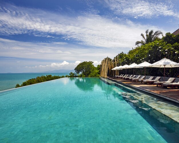 Das Six Senses Samui ist ein exklusives Resort auf der Nordspitze von Koh Samui, das Luxus‑Villen in einer tropischen, naturnahen Umgebung mit spektakulären Blicken über den Golf von Thailand vereint. Inspiriert von einem traditionellen thailändischen Fischerdorf, liegen die meisten der 66 privaten Villen inmitten üppiger Vegetation und viele verfügen über eigene Infinity‑Pools mit Meerblick. Gäste profitieren von persönlichem Butler‑Service, direktem Zugang zu Strand und Meer, außergewöhnlichen Wellness‑Erlebnissen im Six Senses Spa und vielfältigen Aktivitäten wie Schnorcheln, Bootsausflügen oder Thai‑Kochkursen. Die Küche setzt auf frische, lokale Zutaten aus eigenen Gärten und bietet innovative Restaurants mit Meerblick.