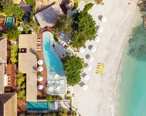 Team Hotels & HideawaysAcht Hektar, die einem Paradies gleichkommen: Das erwartet Sie nur einen 45-minütigen Flug von Bangkok entfernt auf einer grünen, von sanften Hügeln durchzogenen Landzunge auf Koh Samui. Hier schmiegen sich die Villen des Six Senses Samui an einen malerischen Sandstrand, der von tropischer Pracht umgeben ist. Abseits von Koh Samuis belebten Orten versteckt sich dieses Refugium und mutet mit seinem wohldurchdachten Design wie ein idyllisches thailändisches Fischerdorf an. Wenn Sie den Blick über das Meer und die vorgelagerten Inseln schweifen lassen, umgeben von der warmen Meeresbrise eine Massage genießen, Ihre Sinne auf eine kulinarische Reise der Extraklasse führen und Ihr Guest Experience Maker für Sie unvergessliche Momente kreiert, wird der Traum vom entspannten Luxus-Urlaub Wirklichkeit. Jetzt müssen Sie sich nur noch entscheiden, ob Sie sich zuerst im mit dem Horizont verschmelzenden Infinitypool oder im glitzernden Golf von Thailand erfrischen.