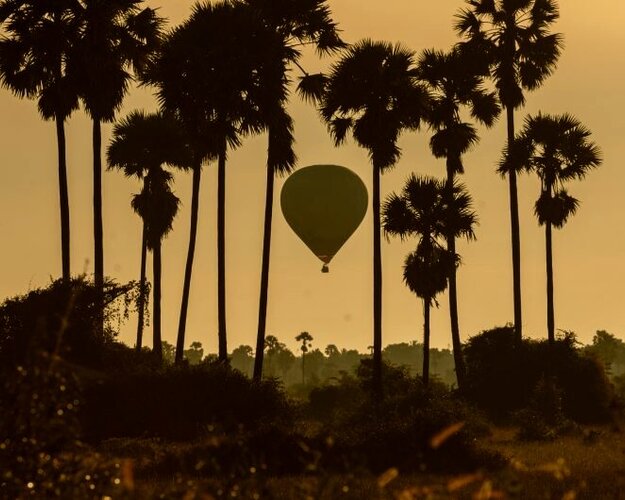 Der krönende Abschluss Ihrer faszinierenden Reise: Eine Fahrt im Heißluftballon über die ländliche Khmer-Landschaft. Sie starten im Süden von Siem Reap, zwischen dem heiligen Berg Phnom Bok und dem atemberaubenden Tempel Banteay Samre. Aus der Luft haben Sie einen fantastischen Panoramablick über die Reisfelder und Wasserkanäle, Toddy-Palmen, Wasserbüffel und aufgeregt winkende Kinder, während Sie im Ballon über ein Dorf schweben. Wenn die Sonne hinter dem heiligen Berg Phnom Bok aufgeht, taucht sie die Landschaft in goldenes Licht – ein magischer Moment und wunderschöner Höhepunkt Ihrer Tage in Indochina. Anschließend geht es zurück ins Hotel. Sie haben noch ausreichend Zeit, am Pool zu entspannen oder für letzte Einkäufe durch die Geschäfte zu ziehen. Ihr Zimmer ist bis zur Abreise für Sie reserviert. Am Nachmittag Fahrt zum Flughafen und Rückflug mit Vietnam Airlines von Siem Reap über Saigon oder Hanoi nach Frankfurt oder München (Flugdauer insg. ca. 18 Std.). (F)