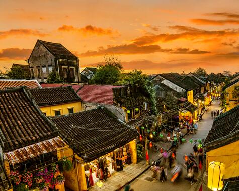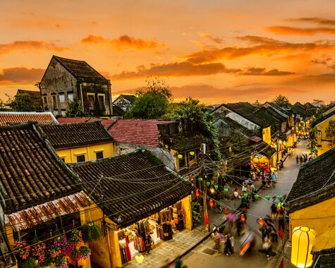 Ausflug nach Hoi An, einem Kleinod unter UNESCO-Schutz: Die Altstadt gilt als außergewöhnlich gut erhaltenes Beispiel eines südostasiatischen Handelshafens. Sie erleben die historische Stadt mit ihren engen Gassen, bunten Lampions, den Handwerker- und Handelshäusern sowie kleinen Tempeln und einzigartigen Baudenkmälern, wie der berühmten japanischen Brücke. Am Nachmittag Bootsfahrt im traditionellen Sampan auf dem Thu Bon Fluss. Im Buddhismus stellt das Entzünden einer Wasserlaterne das Licht der der Hoffnung dar. Entsenden Sie eine Wasserlaterne und werden Sie Teil dieses schönen und stimmungsvollen Rituals. (F)