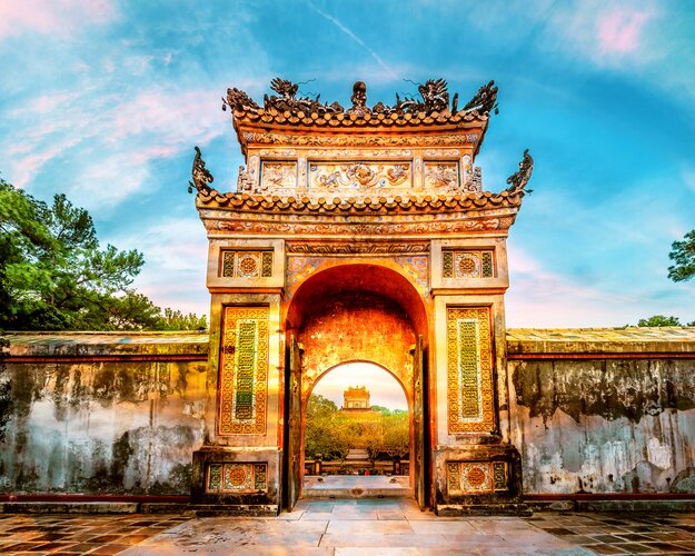 Zunächst geht es in die kleine Handelsstadt Bao Vinh, ca. fünf Kilometer nördlich von Hue am Parfümfluss. In der Innenstadt locken zahlreiche Händler und ein großer Markt, charmante Kaufmannshäuser laden zu einer Tasse Tee ein. Anschließend geht es per Boot zu Handwerksdörfern. Hier können Sie entlang der Blumen- und Reisfelder radeln oder spazieren. Besuchen Sie außerdem einen lokalen Kunsthandwerker, der farbenfrohe Thanh-Tien-Papierblumen herstellt: Lernen Sie mehr über diese Tradition und fertigen Sie sich ein eigenes Exemplar als besonderes Souvenir an. Anschließend wartet ein Drachenboot darauf, Sie langsam zurück ins moderne Leben von Hue zu bringen. Am Nachmittag besichtigen Sie in Hue die Zitadelle mit der Verbotenen Stadt - eine Traumwelt aus Gärten, Teichen sowie von Patina überzogenen Pavillons und Pagoden. Anschließend besichtigen Sie das Mausoleum des Königs Tu Duc, das zu den schönsten Werken royaler Architektur in Vietnam gehört. Acht Kilometer südwestlich von Hue ließ Tu Duc im 19. Jahrhundert noch zu Lebzeiten seine Grabanlage errichten und verbrachte hier viele Tage mit Konkubinen, dichtend in einem Pavillon am See. (F)