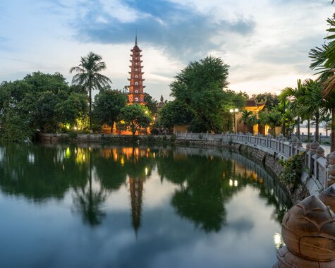 Auf einer Rikscha-Fahrt durch das Altstadtlabyrinth werden Geschichte und Alltag der Stadt unmittelbar spürbar. Anschließend fahren Sie im Privatwagen zum West Lake und besichtigen die Tran Quoc Pagode. Danach besuchen Sie die Ein-Pfahl-Pagode und den Literaturtempel, einst erste Universität des Landes. Gesäumt von sorgsam gepflegten, schattigen Gärten, führt Sie der Weg durch fünf Höfe, vorbei an zahlreichen Toren und Pavillons. Heute ist der Tempel Konfuzius geweiht. Am Abend unternehmen Sie eine Street-Food-Tour in einem nostalgischen Jeep. Sie erleben die Stadt aus einer anderen Perspektive und lernen die kulinarischen Genüsse des vietnamesischen Alltags kennen. Wenn Sie möchten, endet der Abend in einer Bar mit Live-Musik. (F/A)