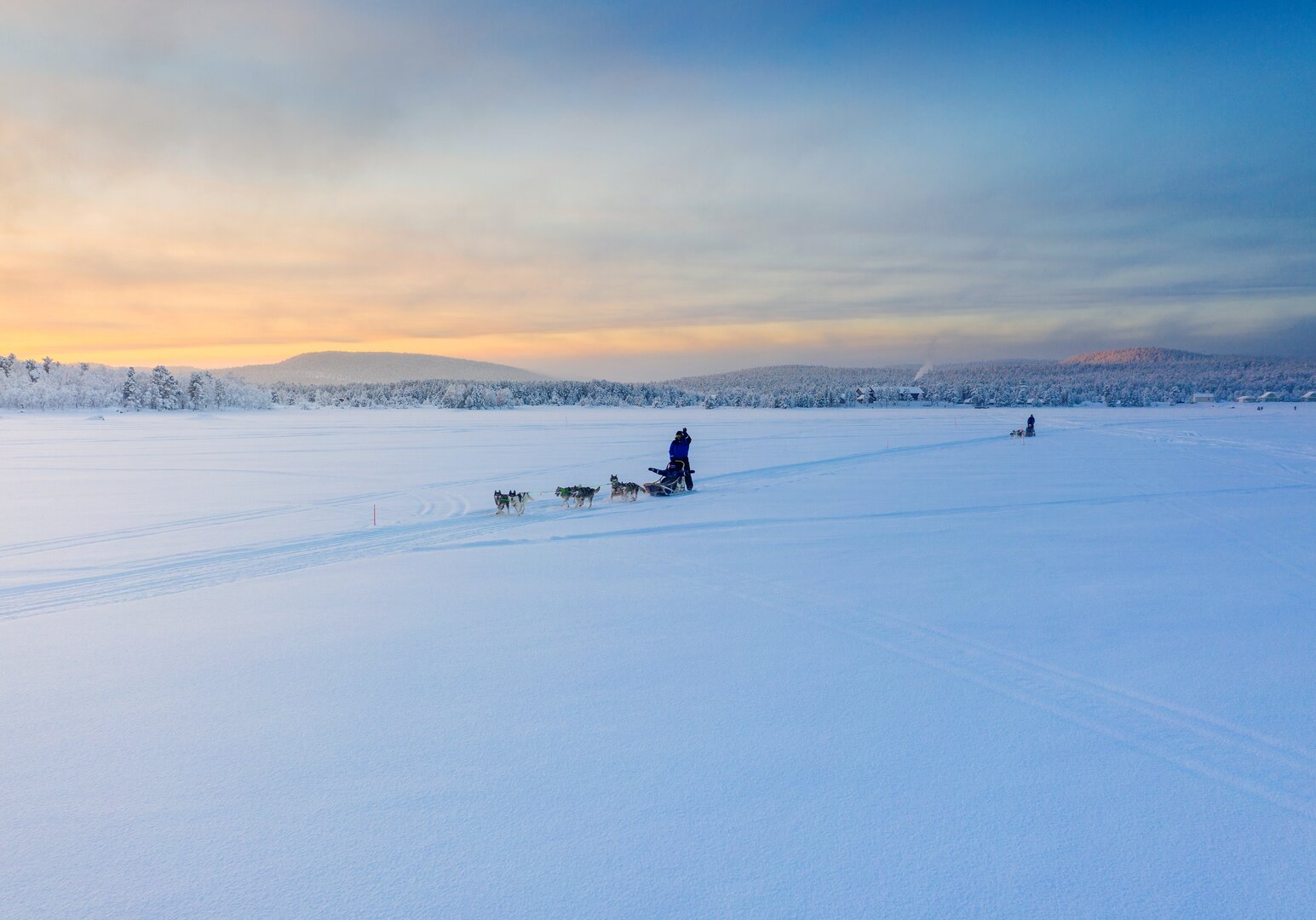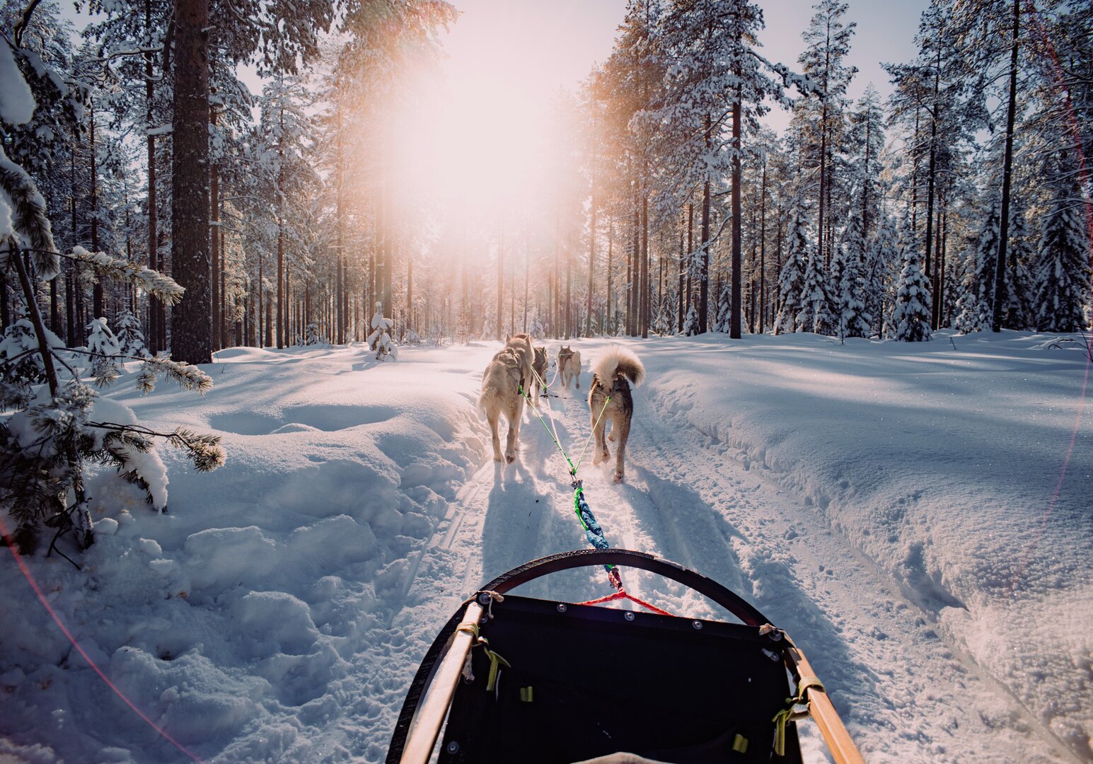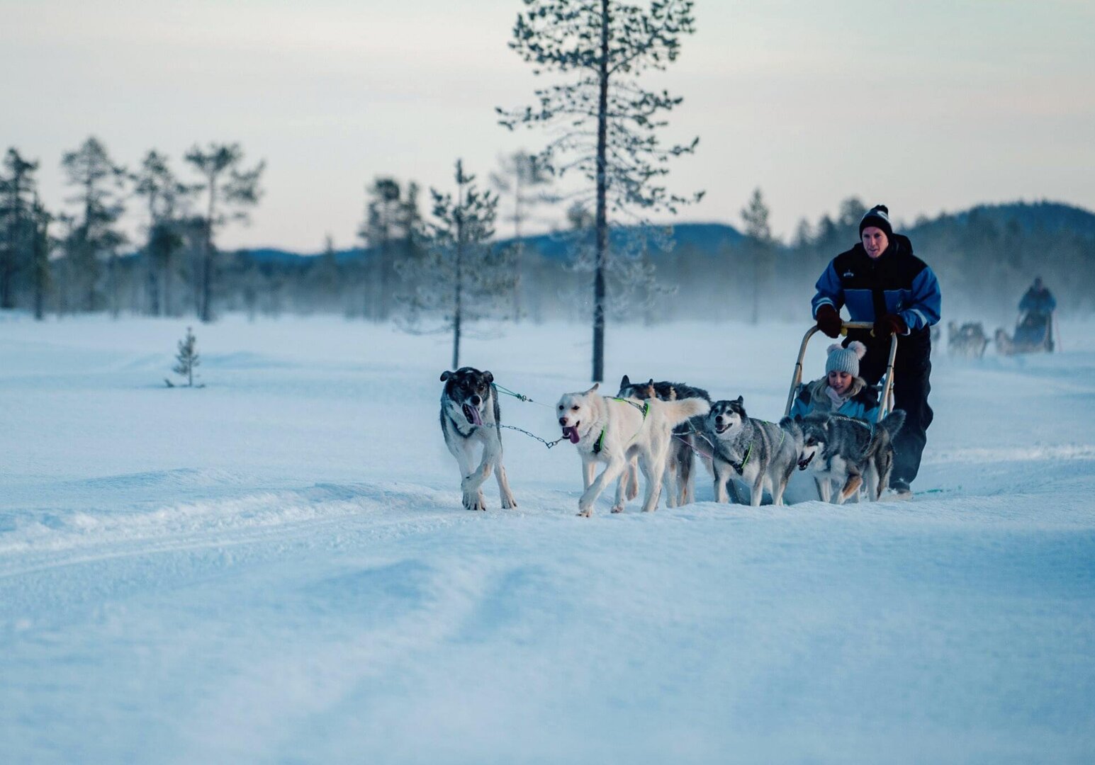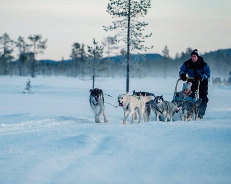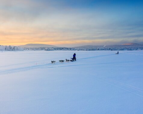 Nach dem Frühstück erwartet Sie ein unvergessliches Erlebnis: Nach einer kurzen Einweisung in den Umgang mit dem Hundeschlitten starten Sie zu einer Fahrt durch verschneite Wälder und über zugefrorene Seen. Die Energie der Huskys ist ansteckend – und sobald die Fahrt beginnt, umgibt Sie eine beinahe magische Stille. Der Nachmittag steht Ihnen zur freien Verfügung. Ein gemütlicher Start in den Abend: Im von einem Schneemobil gezogenen Schlitten geht es durch die verschneite Landschaft zu einem abgelegenen Beobachtungsplatz. Dort erwarten Sie heiße Getränke, knisterndes Feuer und – mit etwas Glück – ein faszinierendes Schauspiel am Himmel: die Nordlichter in ihrer ganzen Pracht, fernab jeglicher Lichtverschmutzung. (F/M/A)