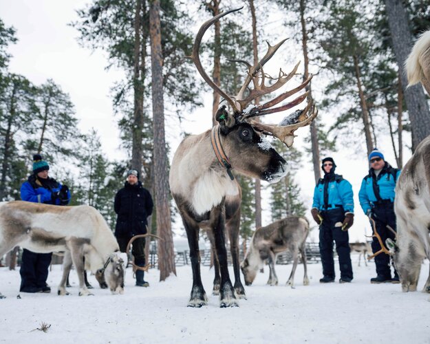 Tauchen Sie heute ein in das Leben der Rentierhirten. Bei dieser liebevoll geführten Tour begegnen Sie den sanften Tieren hautnah, dürfen sie füttern und erfahren Wissenswertes über die samische Kultur und die Bedeutung der Rentiere für das Leben im hohen Norden. Eine gemütliche Rentierschlittenfahrt rundet das Erlebnis ab. Auf einer geführten Schneeschuhwanderung am Nachmittag geht es zur Prospektor-Goldmine – eine ideale Kombination aus Bewegung, Natur und Geschichte. Ihr Guide erzählt Ihnen unterwegs spannende Anekdoten über die lokale Flora, Fauna und die Vergangenheit der Region. Im gemütlichen Restaurant werden Ihnen zum Abendessen traditionelle Gerichte aus der Region aufgetischt. (F/M/A)