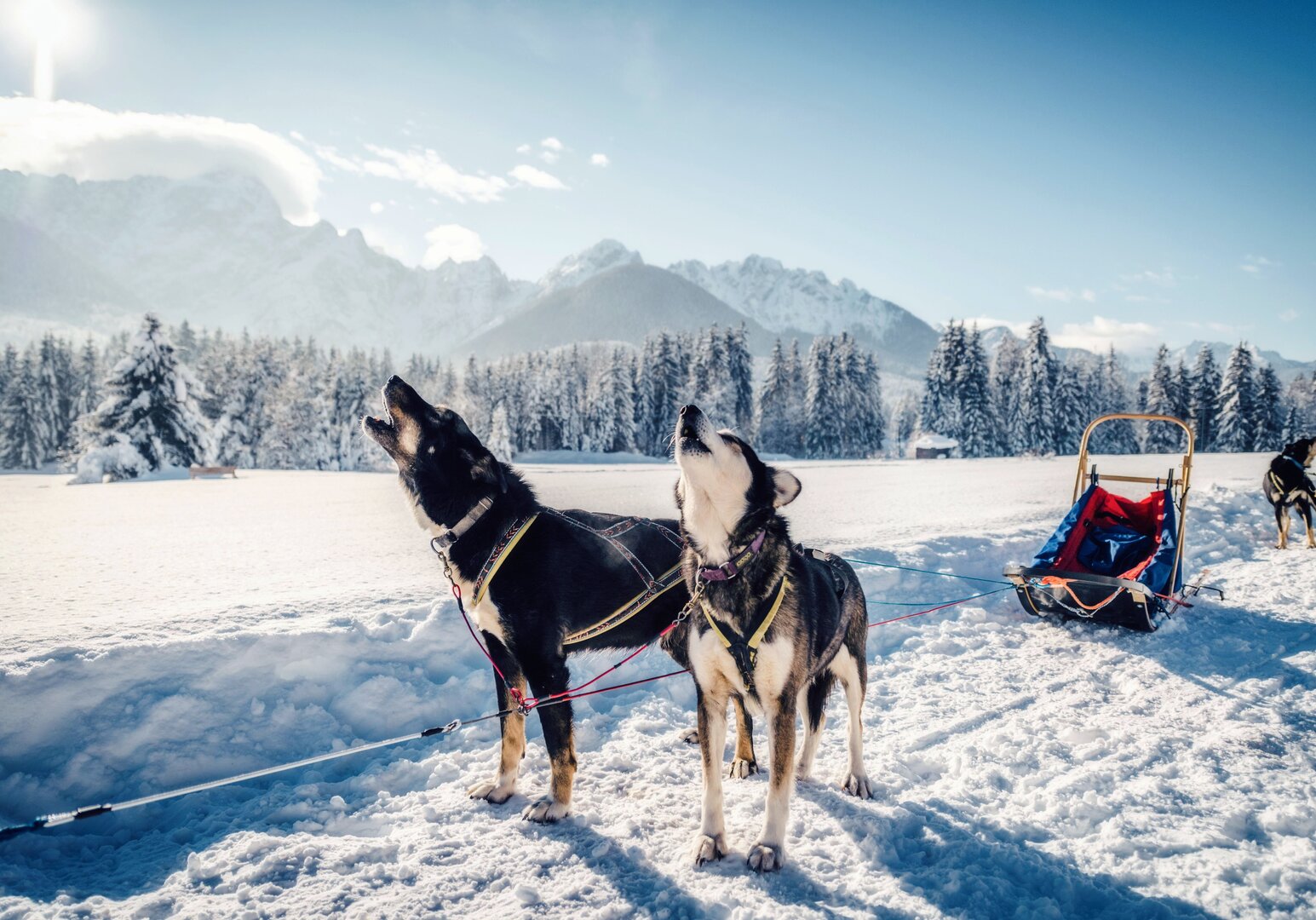 Den Husky-Schlitten selbst durch die Winterlandschaft steuern