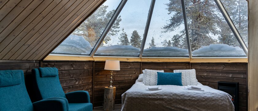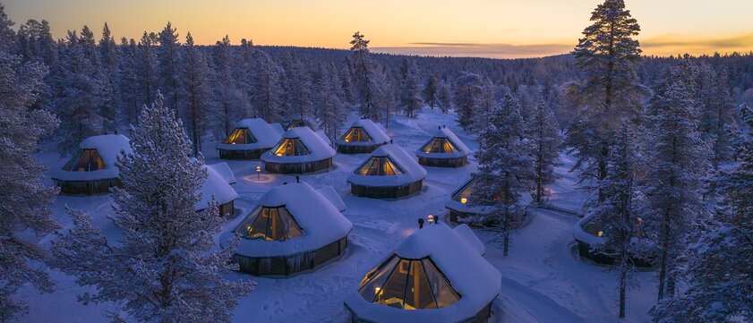 Im finnischen Lappland wird der Traum vom Winterwunderland Realität. An kaum einem anderen Ort dieser Welt liegen die Ruhe der Natur und die Betriebsamkeit der touristischen Orte so nah beieinander wie hier. Inmitten dieser einzigartigen Naturlandschaft befindet sich das Wilderness Hotel Muotka. In modernen Design-Cottages können Sie die Polarlichter im Winter direkt aus Ihrem Zimmer heraus beobachten oder den Blick über die schneebedeckte Landschaft schweifen lassen. Aber auch im Sommer und im Herbst hat Lappland seine Vorzüge. In der Umgebung locken einige Aktivitäten, darunter Wandertouren, Ski- oder Schneemobilfahren. Erleben Sie die winterlichen Himmelslichter hautnah und tauchen Sie ein in die endlose Stille der Region.