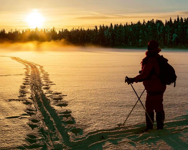 Heute probieren Sie eine traditionelle, finnische Wintersportart in der wunderschönen Winterlandschaft aus. Sie lernen die Skier kennen, wie man mit ihnen umgeht und einige nützliche Techniken kennen. Bei diesem Ski-Schnupperkurs geht es darum, etwas Neues zu lernen, und wenn Sie erst einmal den Dreh raushaben, wird es der schönste Sport sein, den Sie je gemacht haben. In der Umgebung von Muotka gibt es viele beleuchtete Loipen, so dass Sie nach dieser Einführungstour auch auf eigene Faust losziehen können. Am Abend erwartet Sie eine Motorschlittentour, bei der Sie sich auf die Suche nach den Nordlichtern begeben. Sie fahren zu den offenen Stellen, wo die Chancen, das Polarlicht zu sehen, am größten sind. Die Fahrstrecke hängt von den Wetterbedingungen ab; wenn der Himmel vielversprechend aussieht, werden Sie anhalten und dieses wunderschöne Schauspiel bewundern. (F/M/A)