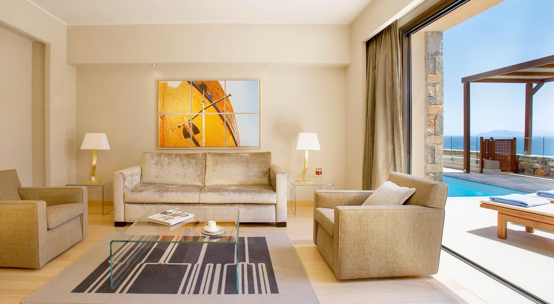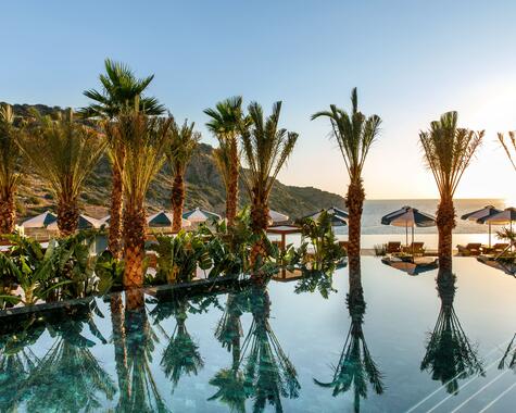 Das Daios Cove Luxury Resort & Villas liegt auf Kreta an einer privaten Bucht mit kristallklarem Wasser und spektakulärem Blick auf die Ägäis. Die moderne Anlage kombiniert elegantes, minimalistisches Design mit warmen mediterranen Akzenten und luxuriöser Ausstattung. Gäste wohnen in geräumigen Zimmern, Suiten oder Villen, viele mit privatem Pool und Meerblick. Das Resort bietet umfassende Wellness- und Spa-Angebote, mehrere Restaurants mit mediterraner und internationaler Küche, Tennis, Wassersport sowie zahlreiche Freizeit- und Familienaktivitäten. Die Lage verbindet Ruhe, Natur und Komfort mit der Nähe zu kretischer Kultur und Landschaft.