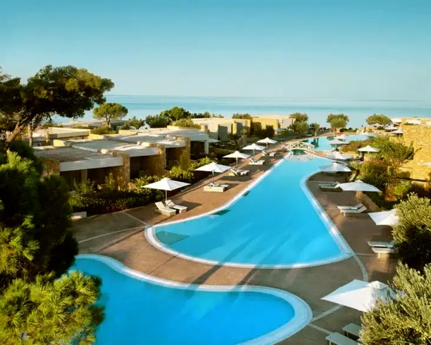 Ikos Olivia ist ein luxuriöses 5-Sterne-Resort auf der griechischen Insel Kos, das für seine elegante Architektur, großzügigen Pools und direkten Zugang zum kristallklaren Wasser der Ägäis bekannt ist. Die Anlage bietet stilvolle Zimmer und Suiten, viele mit privatem Balkon oder Meerblick, sowie eine Vielzahl an Gourmetrestaurants, Bars und einem exklusiven Spa. Familien, Paare und Reisende, die Erholung suchen, genießen hier maßgeschneiderte All-Inclusive-Angebote, Sportmöglichkeiten und Unterhaltungsprogramme. Ikos Olivia verbindet moderne Eleganz mit traditionellem griechischem Charme und garantiert einen unvergesslichen Urlaub in einer traumhaften Umgebung.