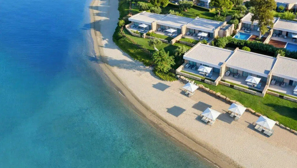 Team Hotels & Hideaways„Unconditional Luxury“: Getreu diesem Konzept empfängt Sie das Ikos Olivia auf der Halbinsel Chalkidiki. Bereits die Lage des Resorts ist eine Garantie für Momente der Extraklasse. Am 450 m langen Sandstrand, umgeben vom glitzernden Mittelmeer und grünen Hügeln, stellt sich unweigerlich ein Gefühl der Gelassenheit ein, das durch das elegante Design und die hellen Farben im Inneren noch einmal maximiert wird. Als traumhafte Orte zum Entspannen locken sowohl das Spa als auch die vier Außenpools, die sich in der von Olivenbäumen und duftenden Pinien gesäumten Gartenanlage verteilen. Für grenzenloses Wohlbefinden sorgen ebenso die zahlreichen Inklusivleistungen, die von Gourmet Erlebnissen in den Restaurants und Bars bis hin zu erstklassigen Möglichkeiten das griechische Lebensgefühl auszukosten, reichen – sei es beim Sport am Strand, auf den Tennisplätzen, im Outdoor-Fitnessstudio oder auf einer Fahrt durch die charmant-ländliche Umgebung mit einem privaten Tesla.