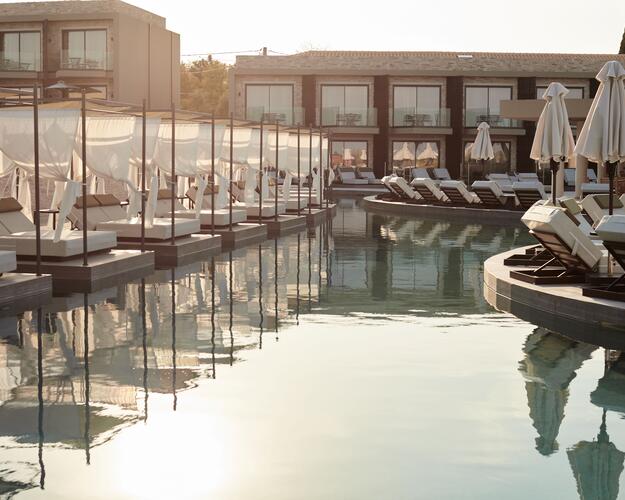 Das Adults‑only‑Resort King Jason Zante auf Zakynthos vereint Luxus, Ruhe und ein einzigartiges Lifestyle‑All‑Inclusive‑Konzept inmitten einer Wasserlandschaft mit zahlreichen Pools und Blick über die Tsilivi‑Bucht. Gäste können Yoga‑ und Pilates‑Kurse besuchen, sich im modernen Fitnessstudio auspowern oder an geführten Wein‑ und Tsipouro‑Verkostungen teilnehmen. Kulinarische Workshops wie Pita‑ und Brotbacken sowie Picknick‑Erlebnisse unter Olivenbäumen ergänzen das Angebot. Im Purai Spa stehen Sauna, Dampfbad, Ruheraum und vielfältige Wellness‑Anwendungen bereit, ergänzt durch Meditation, Dehn‑ und Entspannungstechniken. Entspannung am Pool oder Spaziergänge zur nahegelegenen Bucht runden den Aufenthalt ab.