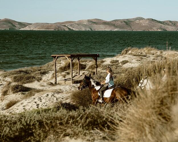 Erkunden Sie die ursprüngliche Landschaft von Kos bei einem Ausritt entlang der windgeprägten Nordküste. Vorbei an Dünen, Feldern und dem Salzsee – je nach Jahreszeit Heimat von Flamingos – eröffnet sich ein ganz besonderer Blick auf die Insel. Bei ruhiger See führt der Weg sogar bis ins flache Wasser.