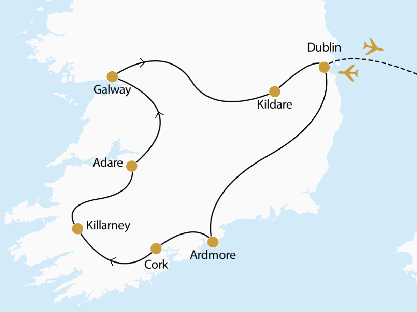 Der Wild Atlantic Way ist nicht nur eine der längsten – 2.600 km! – sondern auch eine der aufregendsten Küstenstraßen der Welt. Entlang der Westküste Irlands schlängelt sie sich durch eine Landschaft, die von der Naturgewalt des Atlantiks geformt wurde. Klippen, Buchten, schroffe Inseln im Meer, dazu liebliche Wiesen und Hügel begleiten Ihren Weg. Ruinen und Burgen sind Zeugnisse der langen keltischen Geschichte, in den Parks alter Herrenhäuser gedeihen Rosen, Rhododendren und Hortensien aufs Trefflichste. Sie wohnen ganz stilecht in Burgen und Landschlössern und genießen vom High Tea bis zum Guiness in der Brauerei auch die kulinarischen Höhepunkte der grünen Insel. Zum Start erleben Sie in Dublin die typisch irische Mischung aus uralter Tradition und ganz heutiger Lebenslust.