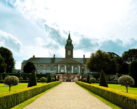 Champagner Afternoon Tea mit Blick auf die prachtvollen Gärten von Powerscourt House and Gardens