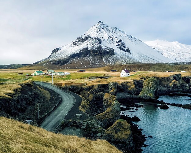 Ein Kontrastpunkt dazu ist die Snæfellsnes-Halbinsel im Westen: oft als „Island in Miniatur“ bezeichnet, vereint sie Gletscher, Küstenklippen, Lavafelder und idyllische Orte wie Stykkishólmur oder Arnarstapi auf engem Raum. Der sagenumwobene Snæfellsjökull, ein mystischer Gletscher-Vulkan, thront über allem und wurde nicht ohne Grund von Jules Verne zur Pforte ins Erdinnere erkoren.