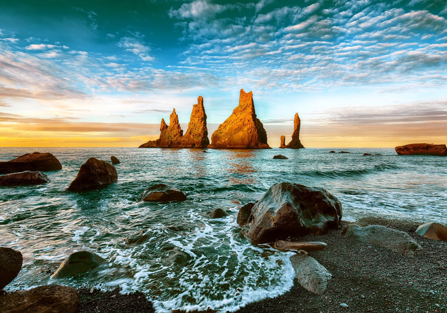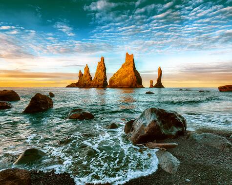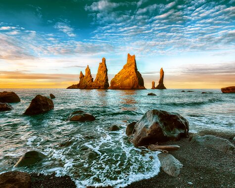 Heute entdecken Sie die atemberaubende Südküste Islands, mit Blicken auf Vulkane und Gletscher, darunter der berühmte Eyjafjallajökull. Sie besuchen die imposanten Wasserfälle Seljalandsfoss und Skógafoss, und genießen die mystische Atmosphäre der schwarzen Lavastrände von Reynisfjara. Auch im August bestehen noch gute Chancen, die niedlichen Papageitaucher am Kap Dyrhólaey zu beobachten. Der hübsche Nationalvogel, auf isländisch „Lundi“, sammelt sich in riesigen Brutkolonien ab Anfang Mai an den Küsten. Nach einem erlebnisreichen Tag kehren Sie zurück und lassen den Tag bei einem köstlichen Abendessen im Hotelrestaurant ausklingen. (F/A)