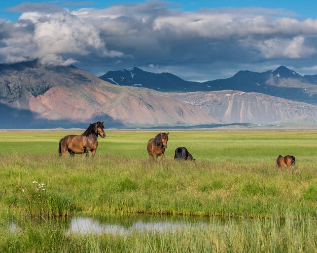 Sie besuchen die berühmte Gletscherlagune Jökulsárlón, in die der Vatnajkökull kleine und größere Eisberge kalbt. Im Sommer unternehmen Sie auf der Gletscherlagune eine Bootsfahrt mit einem Zodiac Boot, bei der Sie ganz nah an den Gletscher heranfahren. Anschließend durchqueren Sie die weiten, von Gletscherläufern gekennzeichneten Sanderflächen der Südküste und unternehmen am schwarzen Strand Reynisfjara einen Spaziergang. Hier können Sie Basaltsäulen und ungewöhnliche Felsformationen bestaunen, bevor Sie am schnurgeraden, 64m hohen Wasserfall Skogafoss halten. Am späten Nachmittag fahren Sie in das Skalakot Hotel - die Unterkunft liegt in der Nähe des bekannten Städtchens Hella. (F)