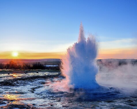 Egal zu welcher Jahreszeit: Ein aufregender Spaß für Groß und Klein ist die Fahrt mit dem Schneemobil auf den Gletscher Langjökull, die ca. vier Stunden in Anspruch nimmt. Es ist ein atemberaubendes Abenteuer, zu zweit über das große Schnee- und Eisfeld zu düsen. Auf dem Rückweg zum Hotel empfehlen wir Ihnen einen Stopp am Geysir Strokkur: Er bricht ca. alle 10 Minuten aus, die Säule des kochend heißen Wassers erreicht bis zu 35 m. Sehr sehenswert ist auch der Wasserfall Gullfoss in der Schlucht des Flusses Hvítá, der in zwei Stufen ca. 32 m tief stürzt. Am Nachmittag empfehlen wir einen Besuch der Laugará Lagoon. Zum Aufwärmen geht es anschließend in die Laugarás Lagoon mit einem 2-Gang-Menü
