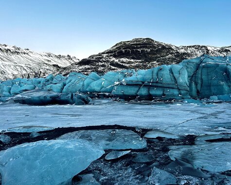 Ein weiteres Abenteuer erwartet Sie, das der ganzen Familie aufregende Erlebnisse beschert: Im Frühling/Sommer erwartet Sie eine Gletscherwanderung auf dem Sólheimajökull Gletscher – mit Ihrem Gletscherführer begeben Sie entlang einer Gletscherlagune mit treibenden Eisbergen durch eine faszinierende Landschaft aus farbigem Eis, tiefen Gletscherspalten, Wasserkesseln und spektakulären Eisformationen, während Sie im Herbst/Winter mit dem Jeep zum vulkanischen Gletscherausläufer des Mýrdalsjökull-Gletschers fahren und nach einer Wanderung mit Sturzhelm und Spikes weiter in eine Höhle aus purem Eis eintauchen. Magisch blaues Licht schimmert, während Sie immer tiefer in die Höhle eindringen – beide Ausflüge sind ein Once in a Lifetime-Erlebnis. Anschließend fahren Sie entlang der Südküste in Richtung Westen auf die Halbinsel Reykjanes. Wenn Sie hier über die Brandung aufs Meer blicken, liegt zwischen Ihnen und der Arktis keine Landmasse mehr. Machen Sie auch einen Stopp an der einsamen Kirche Strandarkirkja, die die Fischer zum Dank dafür errichtet haben, dass sie auf stürmischer See den Weg zurück an Land fanden. In Keflavik angekommen, können Sie die Annehmlichkeiten Ihrer Unterkunft genießen. (F)