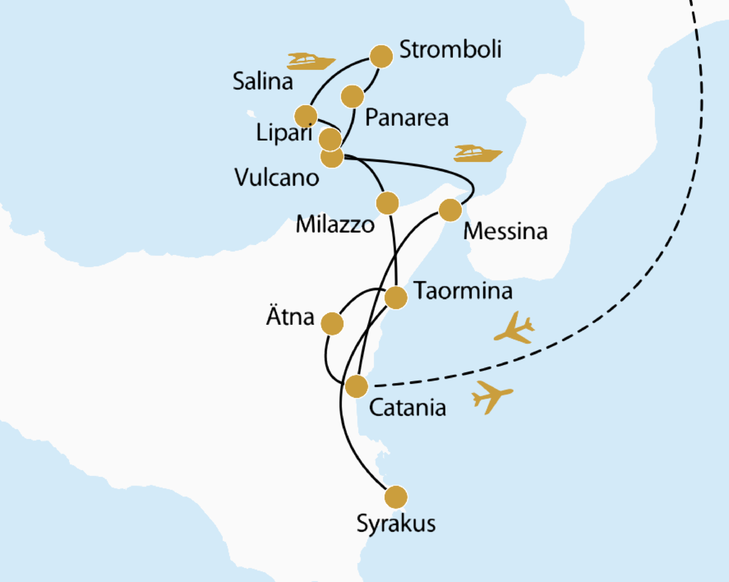 Eine Liebeserklärung an Sizilien und ihre Inselwelt – ein Mosaik aus Geschichte, Naturgewalten und mediterranem Lebensgefühl. In Taormina und Syrakus auf Sizilien begegnen Sie dem kulturellen Erbe der Antike – prachtvolle Tempel, barocke Palazzi und steinerne Theater mit Blick auf das endlose Blau des Meeres. Dann führt Ihr Weg hinaus auf das Tyrrhenische Meer, zu den wilden Liparischen Inseln: Jede von ihnen ein Charakter für sich – mal mondän wie Panarea, mal rau und feurig wie Stromboli. Auf wunderschönen Bootstouren gleiten Sie von Insel zu Insel, immer begleitet vom Duft des Meeres und der Sonne auf der Haut. Kulinarische Genussmomente begleiten Ihre Reise: frischer Fisch, sizilianischer Wein, süße Granita und aromatische Kapern, direkt vom Erzeuger. Und über all dem schweben eindrucksvolle Hotels mit Blick aufs Meer – Rückzugsorte voller Stil und Charme.
