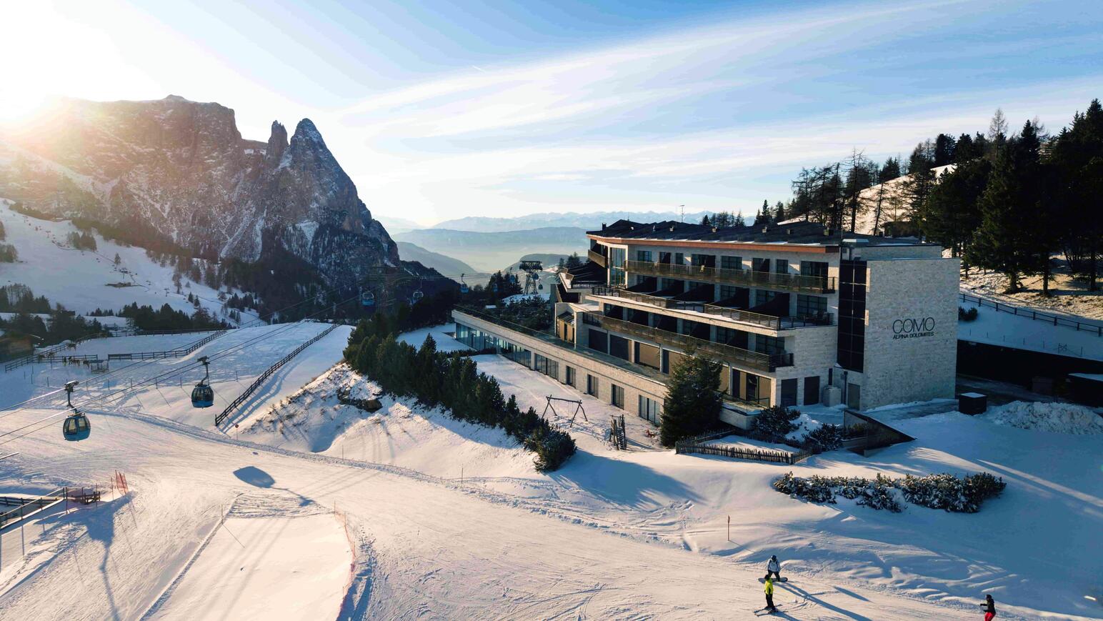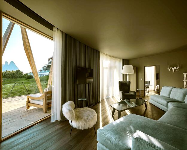 Im Winter das Tor zu einem weißen Wunderland, im Sommer die Pforte in ein blühendes Paradies: Das COMO Alpina Dolomites an der Bergstation der Kabinenbahn zur Seiser Alm bietet ganzjährig Naturerlebnisse vom Feinsten. Inspiriert von der spektakulären Landschaft verbindet das Hotel stilvolle Geborgenheit mit alpiner Eleganz. Entspannen Sie in luxuriösen Zimmern und Suiten mit Kamin, Infrarot-Sauna oder Whirlpool, während von den Terrassen und Balkonen der atemberaubende Blick auf die Dolomiten die perfekte Kulisse für Ihren Aufenthalt bildet.